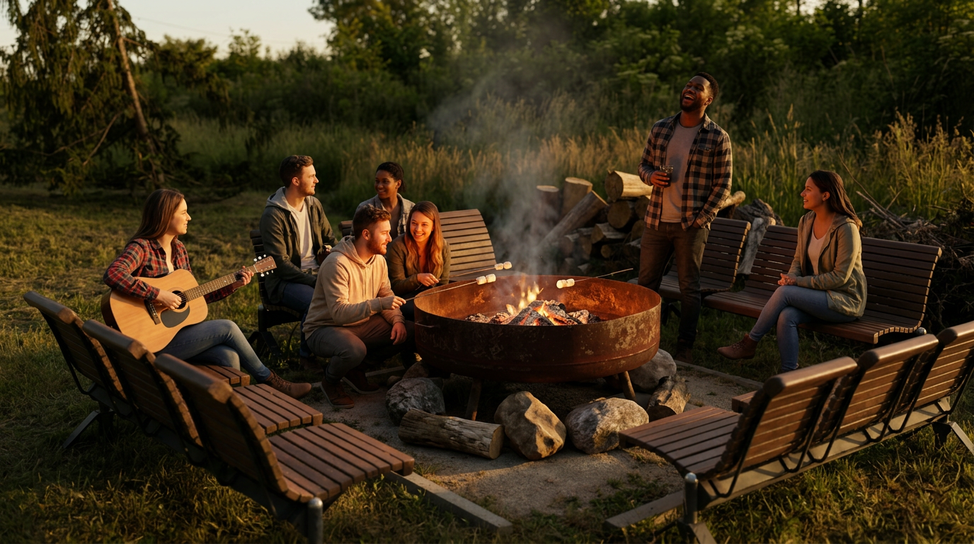Un large brasero vous permettra de cuisiner des grillades et de poursuivre la soirée et les discussions autour du feu.