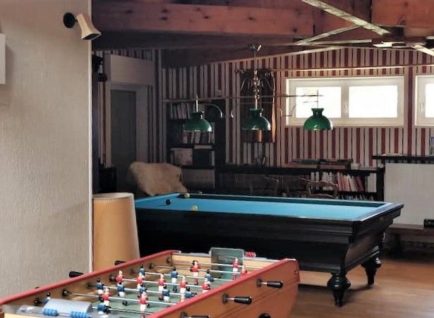 Billard, baby-foot, dart board, ping-pong, terrain de pétanque, PS4, portique.